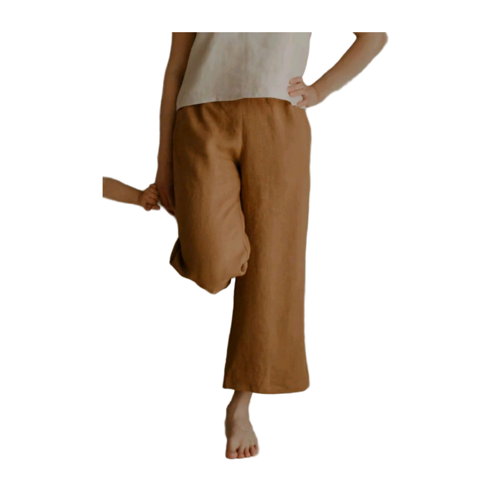 100% pellavaa, Suomessa valmistetut kinuskin väriset Vuola-pellavaculottes. Sivusaumassa taskut, korkea vyötärö. Ihanan pehmeä materiaali.