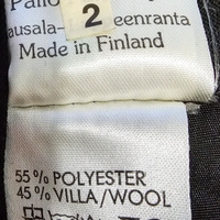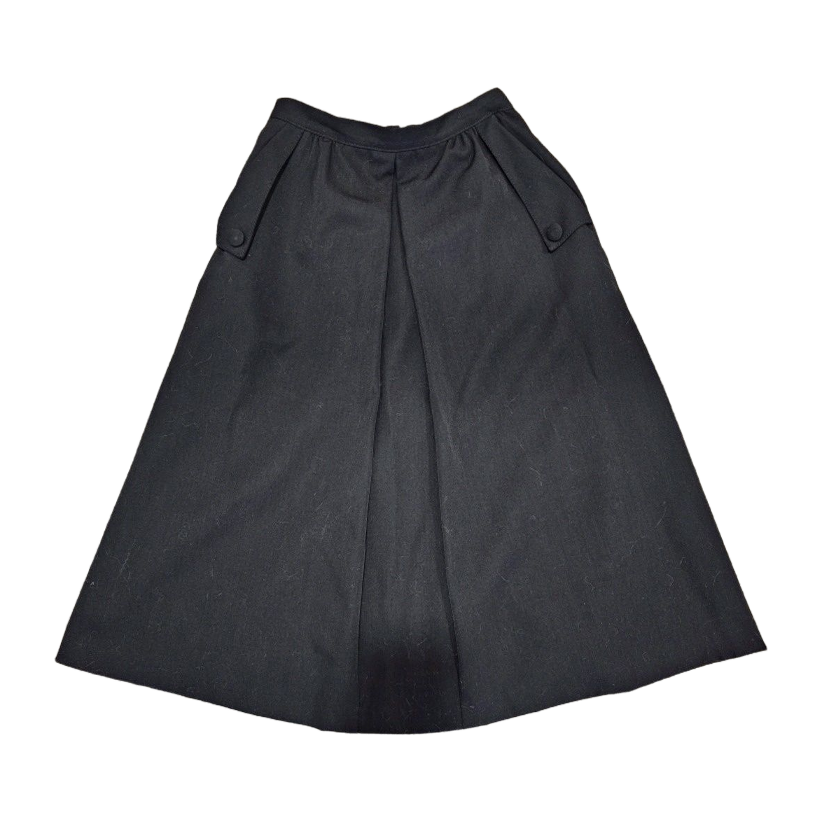 Villesekoitteinen musta vintage-hame, Suomalaisen Pallo-Paita oy:n tuotantoa. Erinomainen kunto. Selkäpuolella vetoketju ja nappi, vuoritettu, taskut.