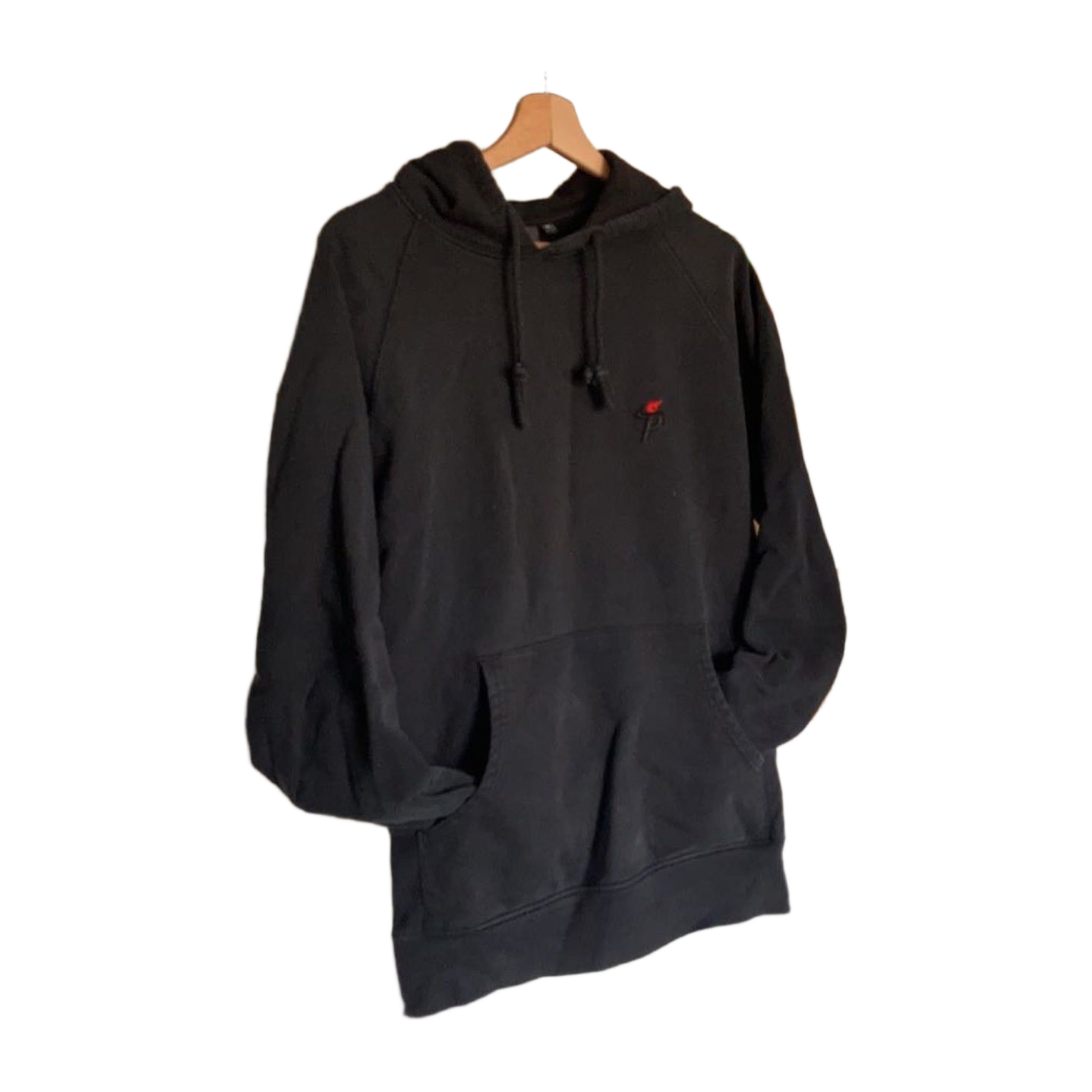 Palacen musta huppari, M koko, käytön jälkeä on, näkyy kuvissa ja huomioitu hinnassa