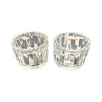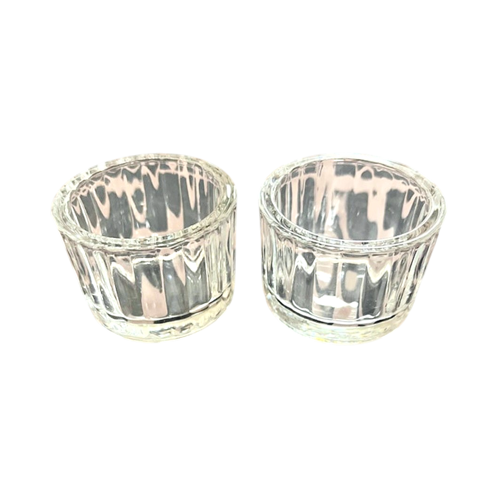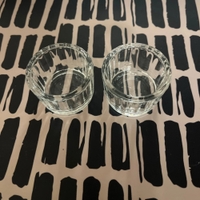Kaksi läpinäkyvää lasikynttilänjalkaa.