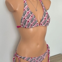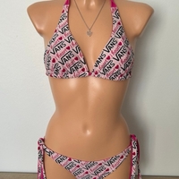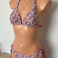 VANS kaksipuoleiset bikinit. Toinen puoli valkoinen VANS-printtikuviolla ja toinen puoli pinkki. Koko noin XS/S. Hyväkuntoiset.