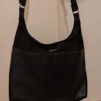 Mustaa keinonahkaa, tilava olkalaukku arkeen ja töihin. Kunto ok