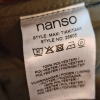 Nanso Maxi tikkitakki. Koko S, tosi reilu. Sopii M/L-koolle jopa. Kai-kai n. 55cm, olka-helma n.