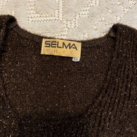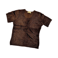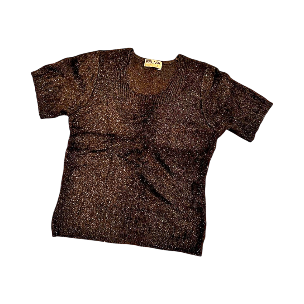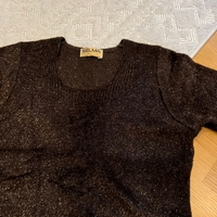 Ruskea vintageneule, kimaltavaa neulosta. Kokolapussa XS, mutta menee M-kokoon asti, tai jopa pieneen L-kokoon.