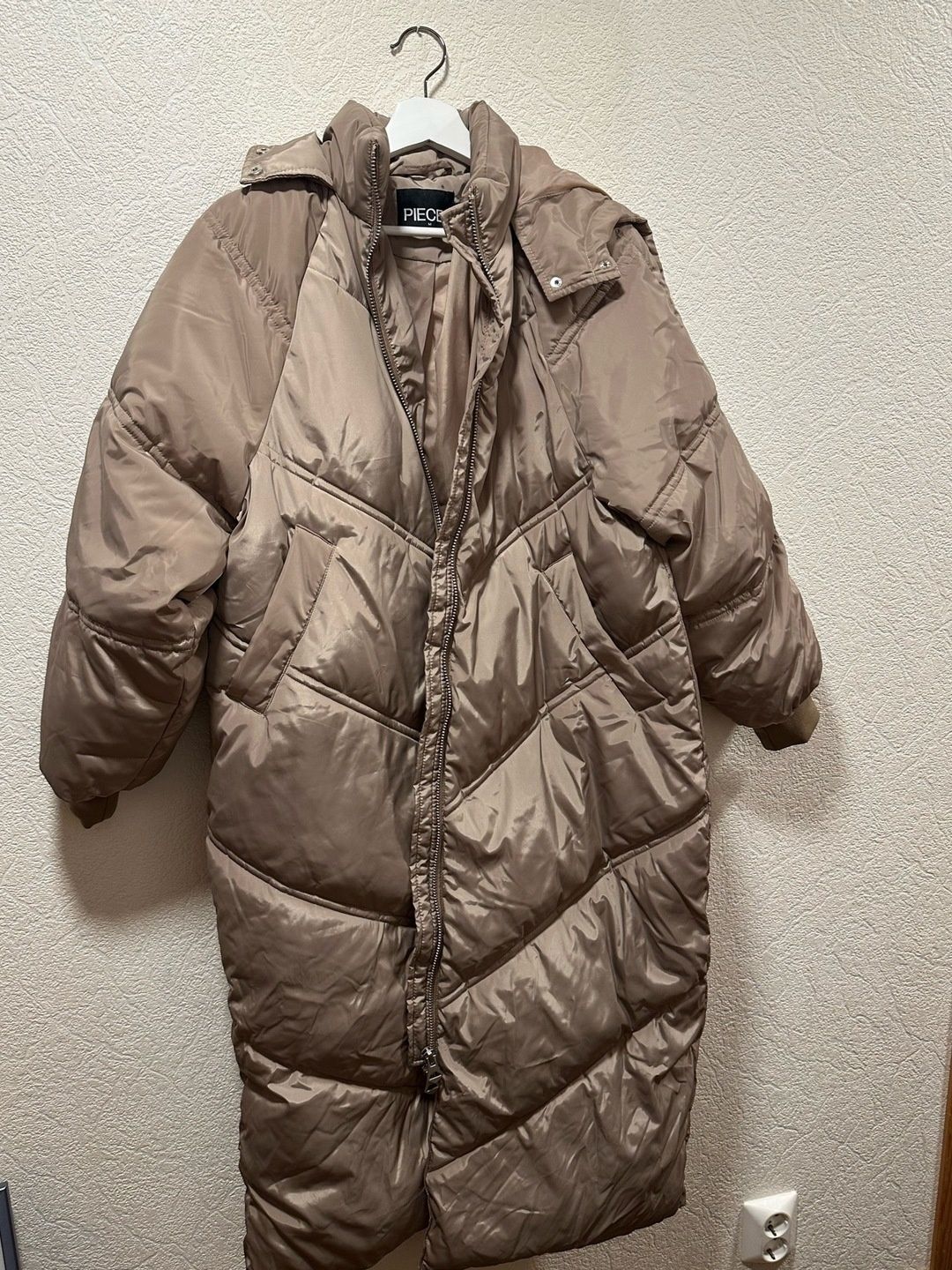 Todella vähän käytetty pitkä beige talvitakki. Itsellä ulottuu polvien alapuolelle.