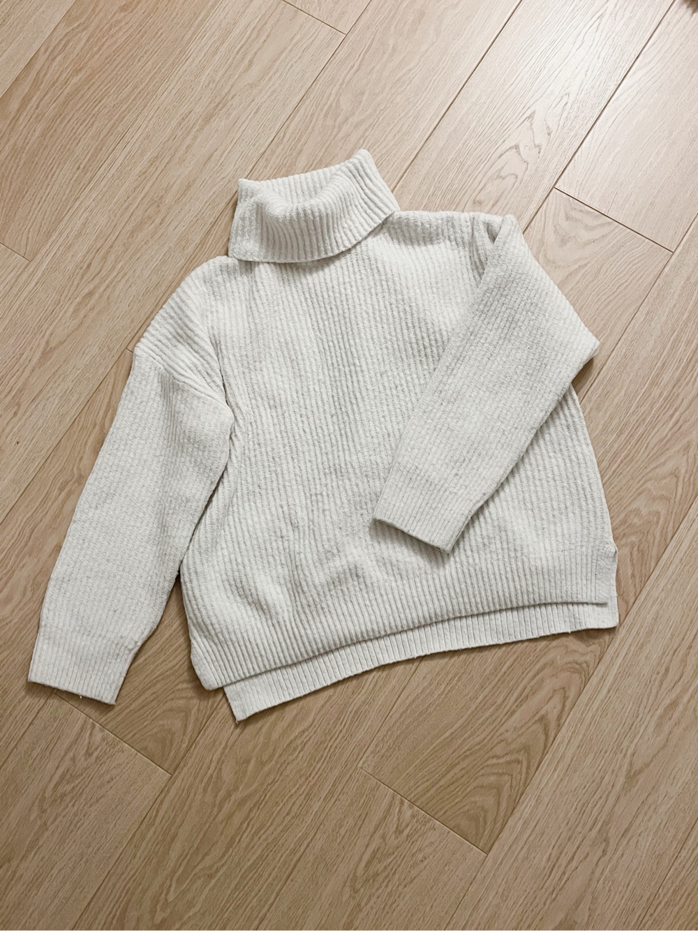 Mango valkoinen erittäin pehmeä neule. Koko XL. Mielestäni hyvä myös M-L koolle väljempänä. Nyppyinen, muuten viaton.