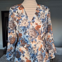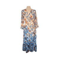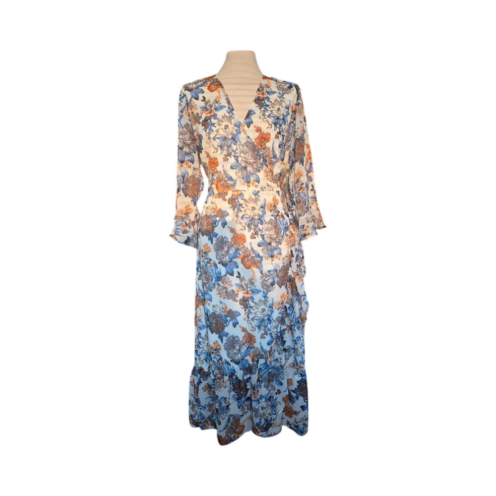 Elegant YAS YASBLUSH Wrap Dress featuring a white base with blue and orange floral print.