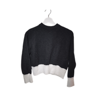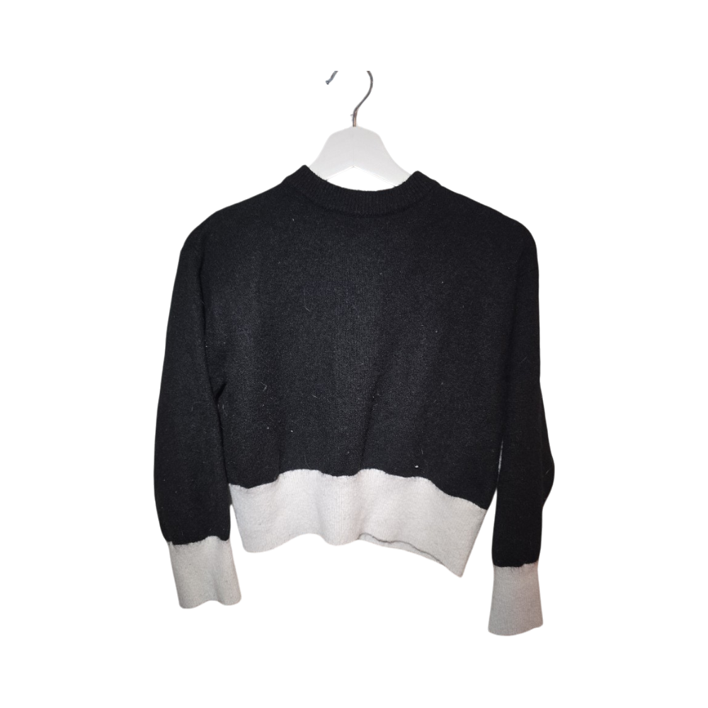 Väljä lyhyt neule, beige resorit helmassa ja hihoissa.