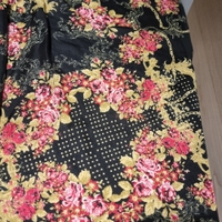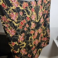 Isohko vähän käytetty huivi. Mustalla pohjalla kukkakuviota.