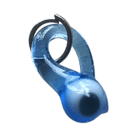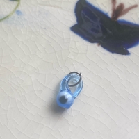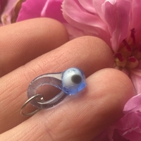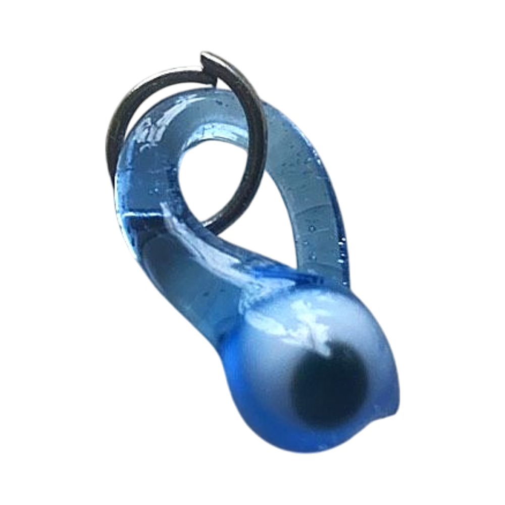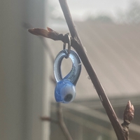 Riipuksen materiaali lasi, lisäksi jokin metallinen korurengas tässä on kiinni.