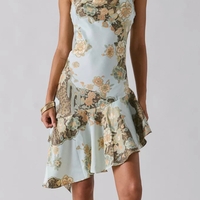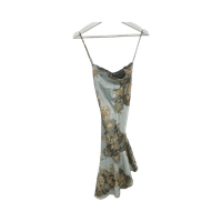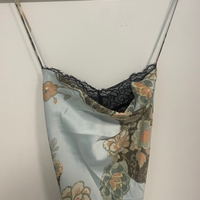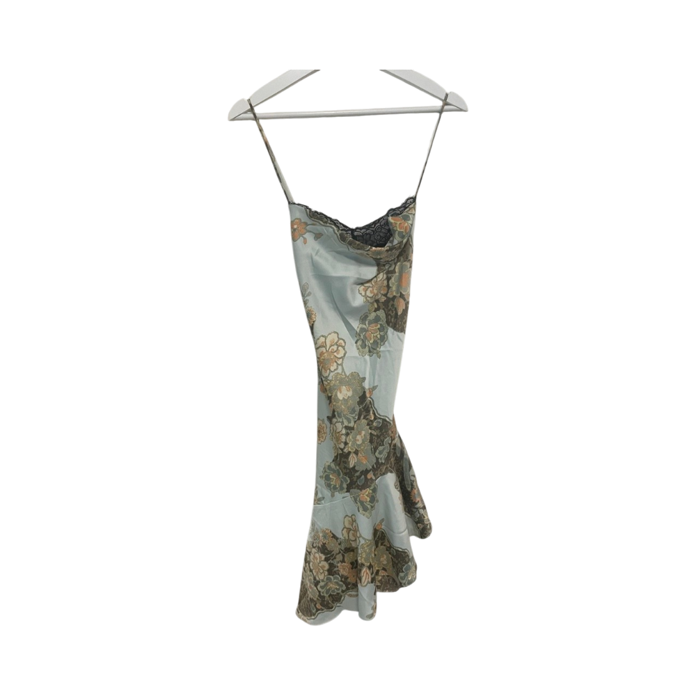Light blue floral slip dress with lace trim and asymmetric hem from Urban Outfitters. #slipdress #kimchiblue #urbanoutfitters
