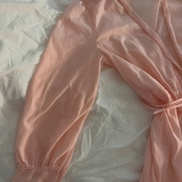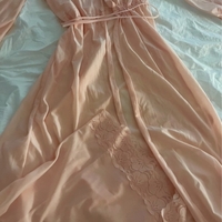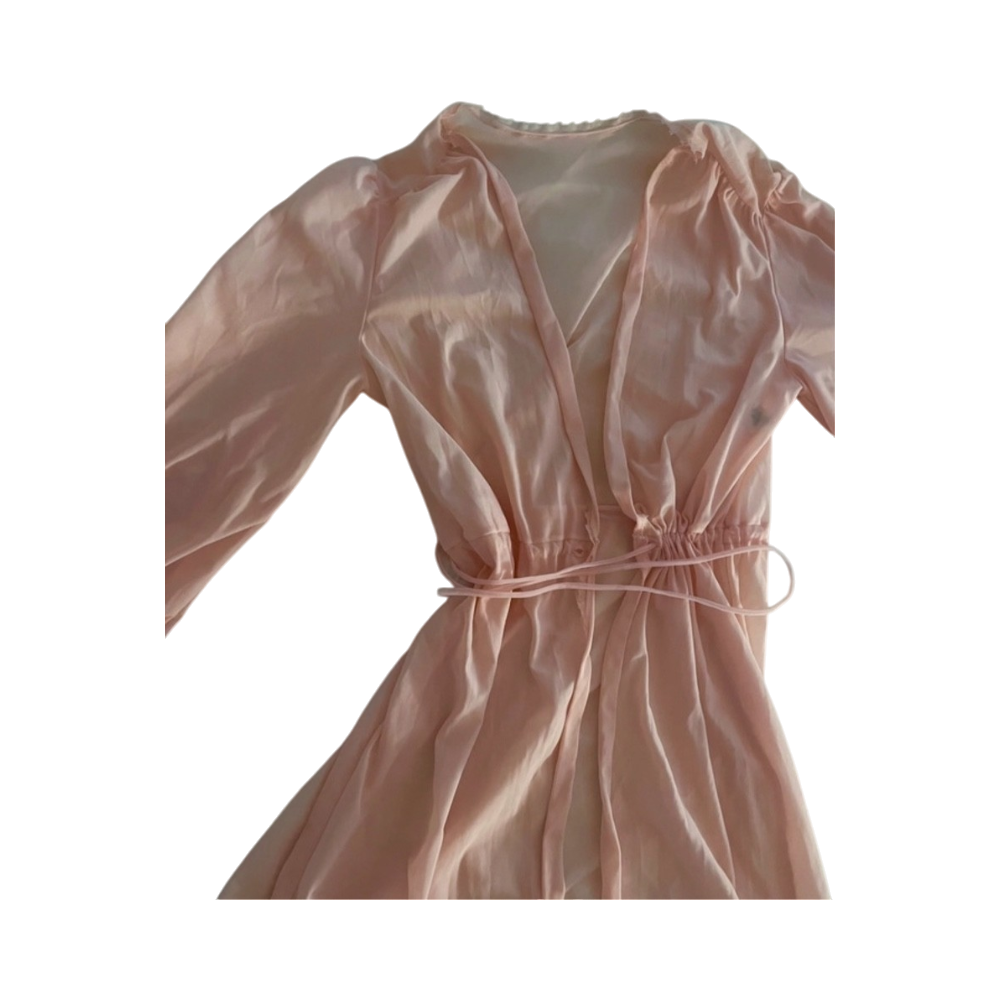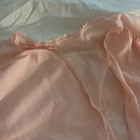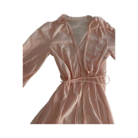 Hienostunut vaaleanpunainen mekko pitsisomisteilla ja kiristysvyöllä.