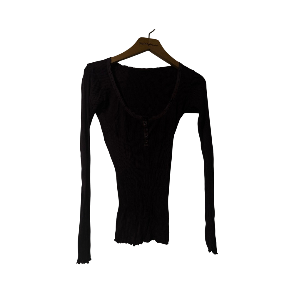 Tiimalasimuotoinen ribbipaita, napit edessä, pitkät hihat.
