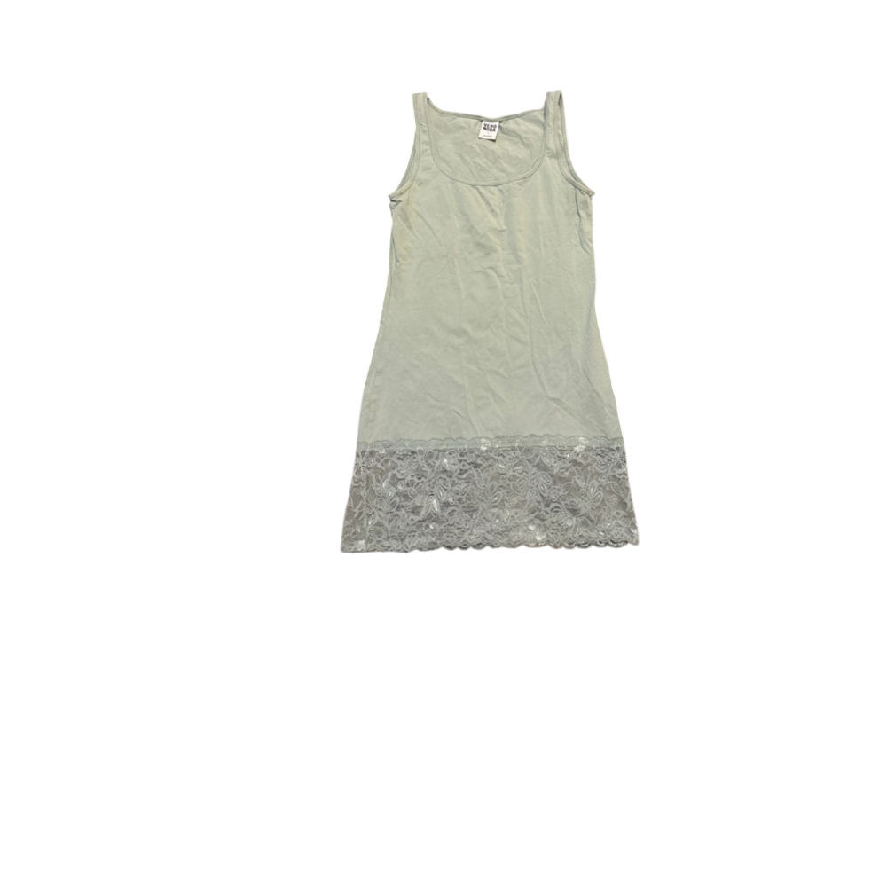 Hihaton mintunvihreä pitkä toppi, pitsireuna helmassa.