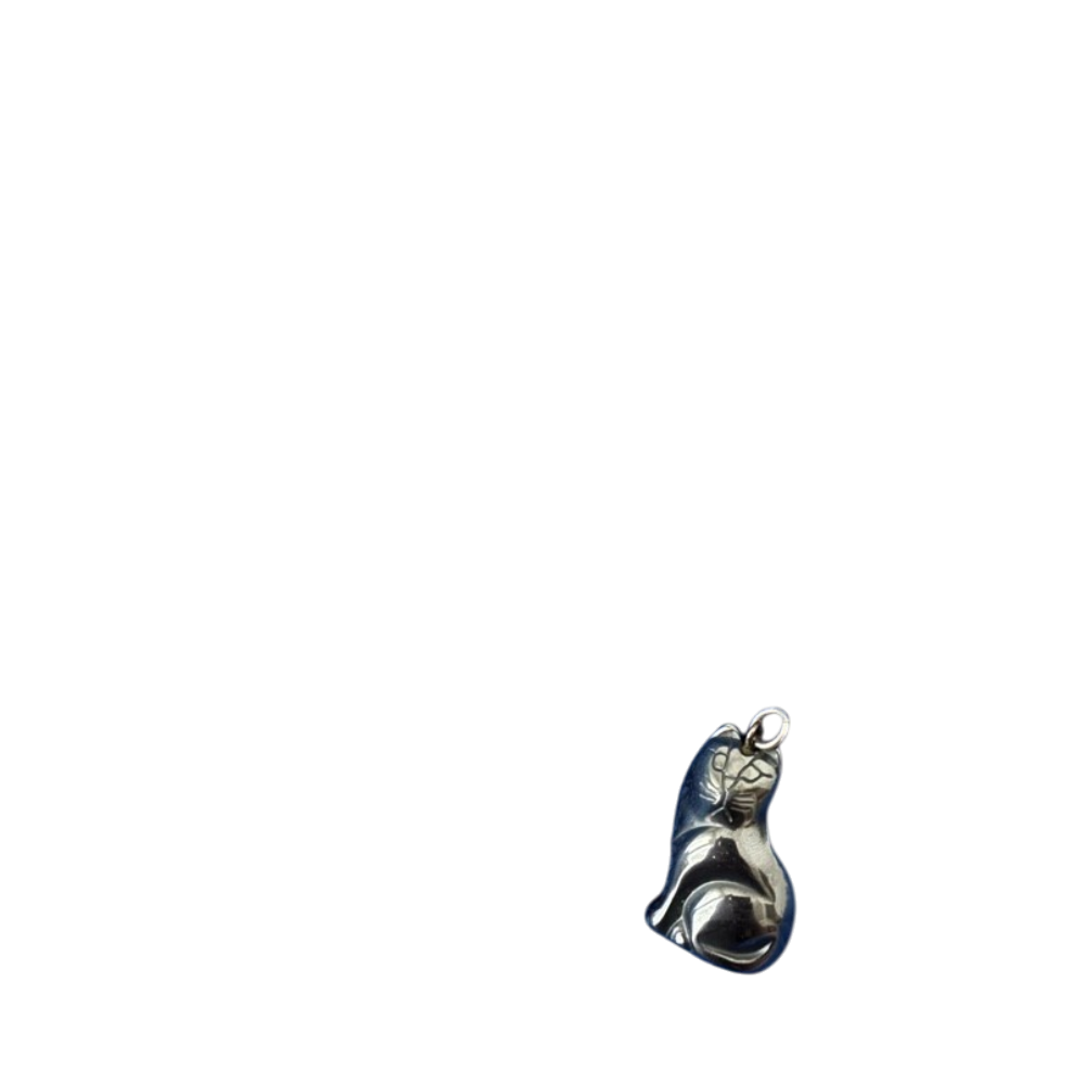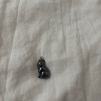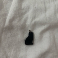 Musta kissa riipus koruun, hopeanvärisellä ripustimella, pituus n.3cm.