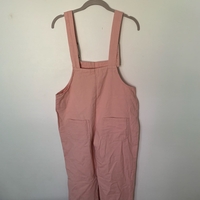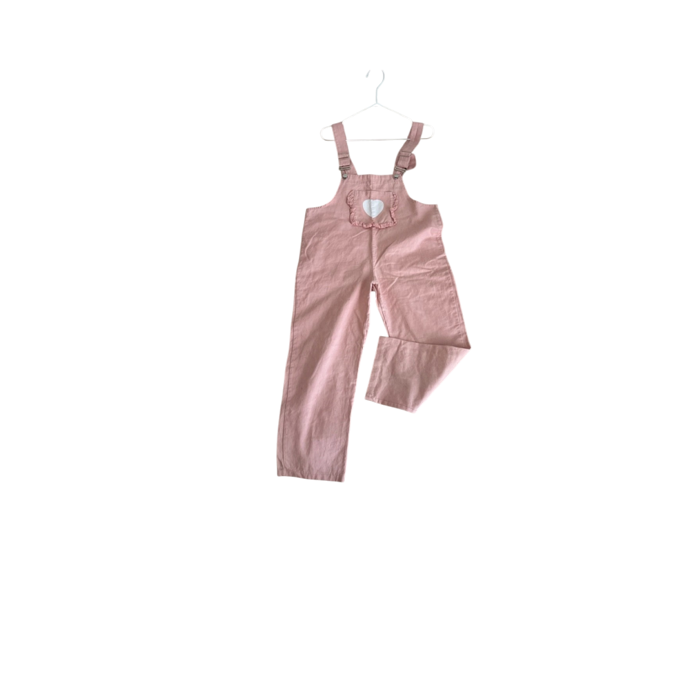 Vaaleanpunaiset, sydänrintataskulla, rento henkseliasu. Ei koko merkintää mutta noin S kokoiset