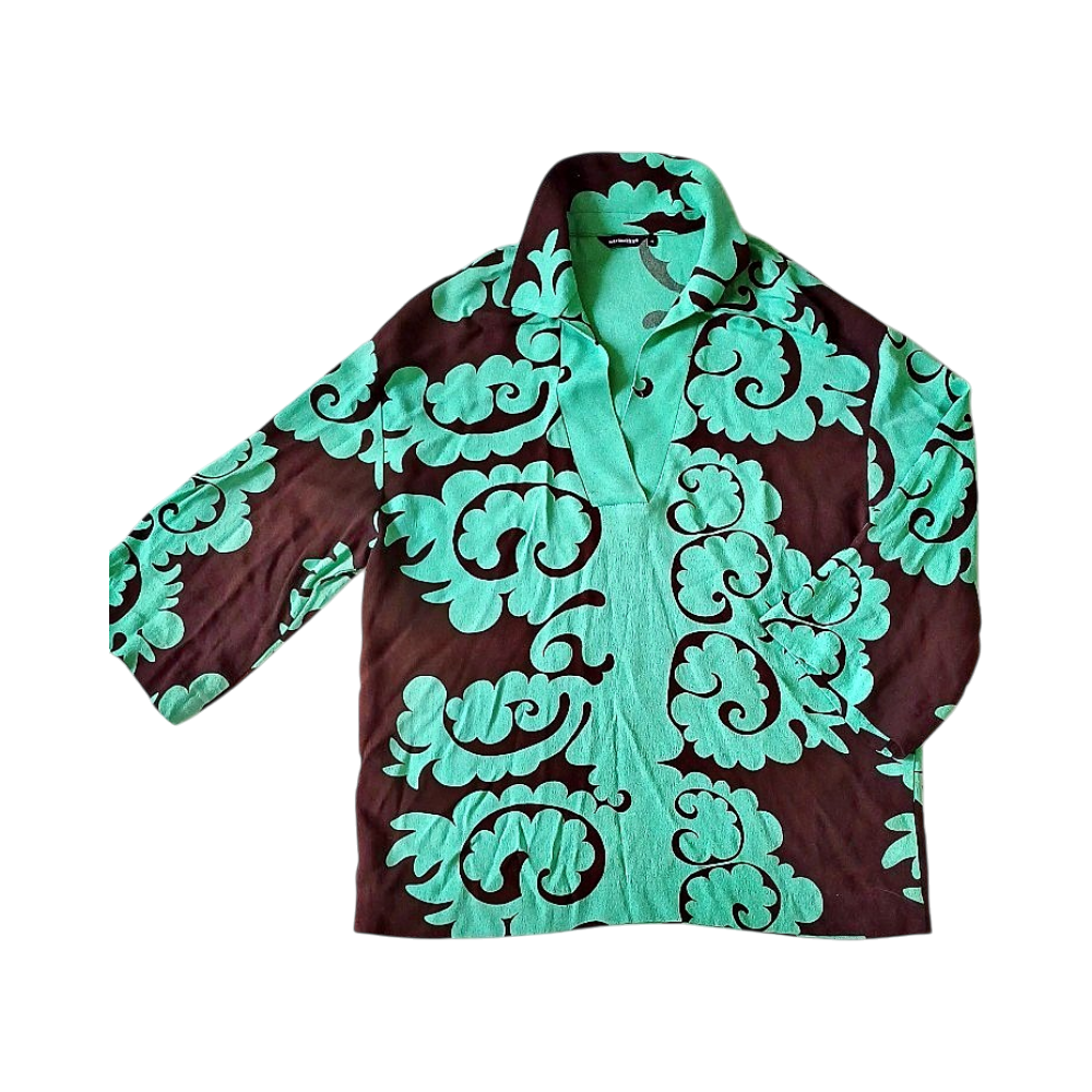 koko 36 S, vihreä/musta. Paita on valmistettu laadukkaasta viskoosi kreppi materiaalista ja siinä on näyttävä kuviointi.