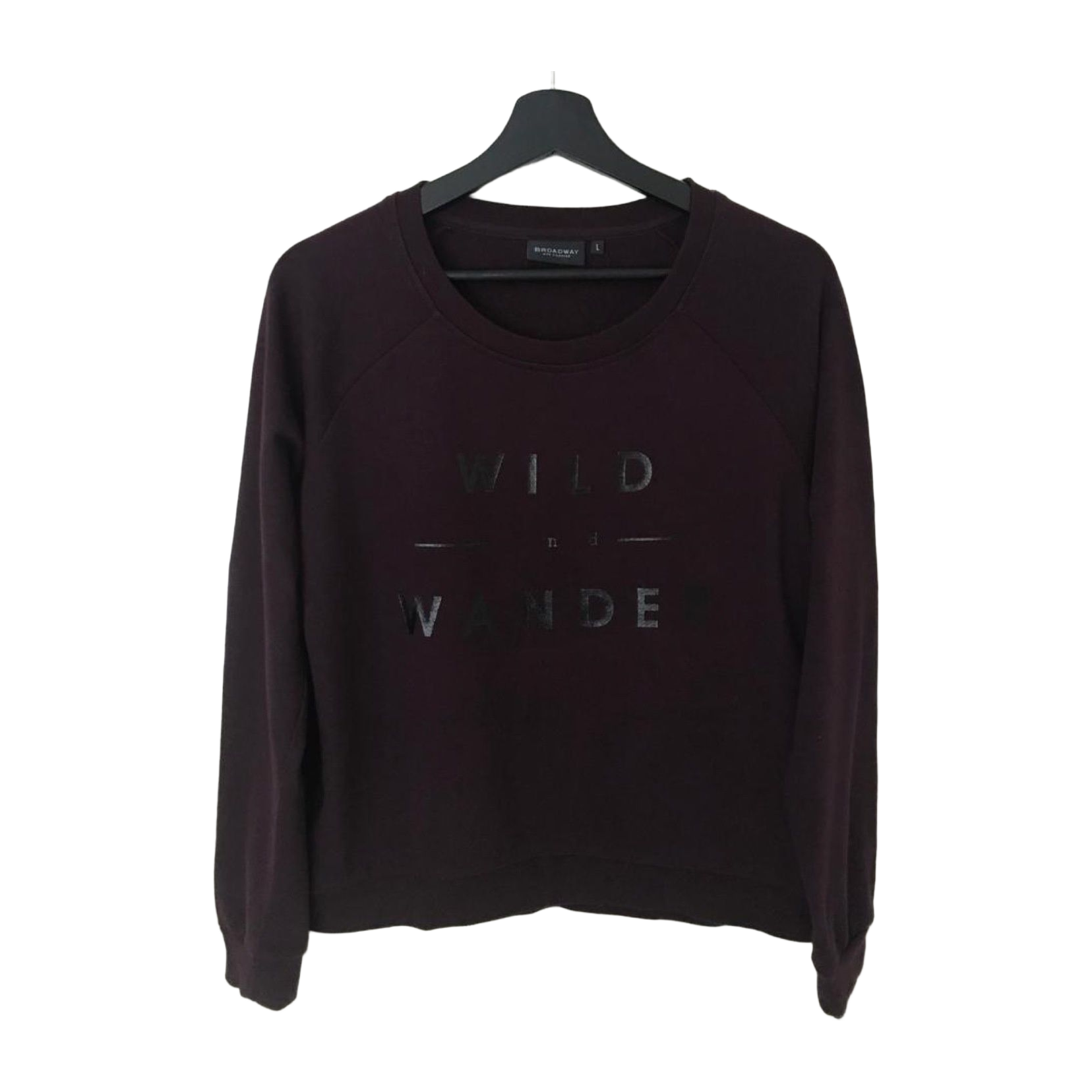 Viininpunainen pitkähihainen. Edessä lukee mustalla ”wild and wander”.