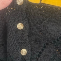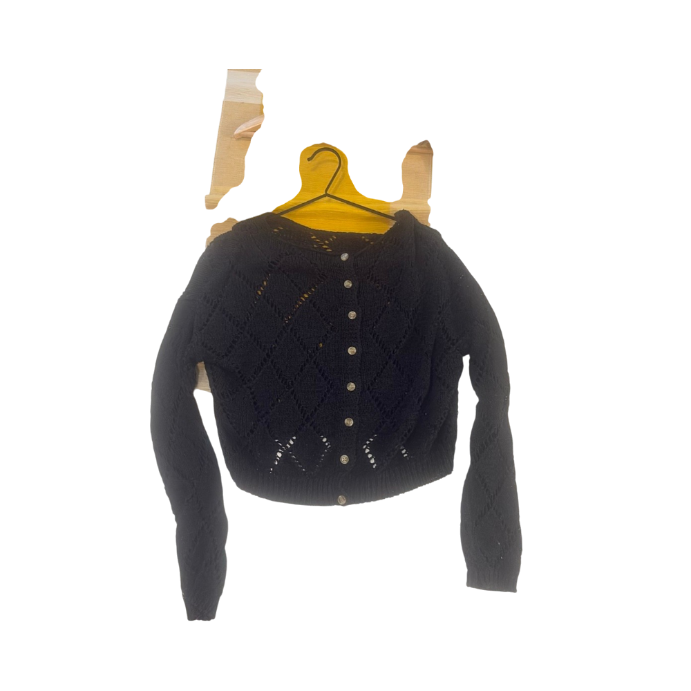 Lightweight openwork knit cardigan with button front. Estimated S-M