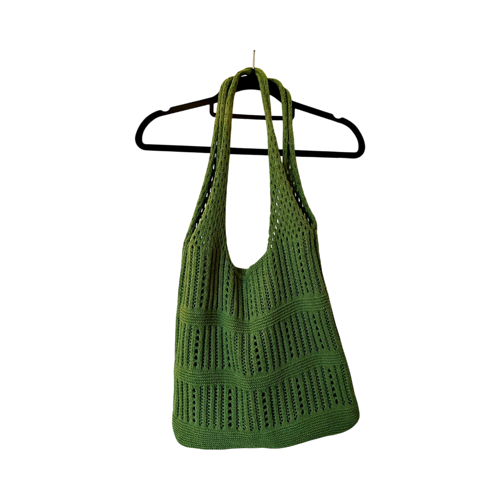 Ihana vihreä neulottu olkalaukku, leveys 35 ja pituus 36cm