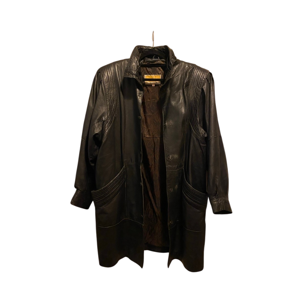 Ihana musta vintage nahkatakki koossa M, menee M-L kokoiselle täydellisesti!