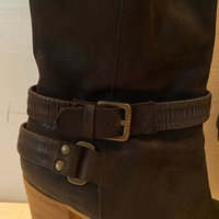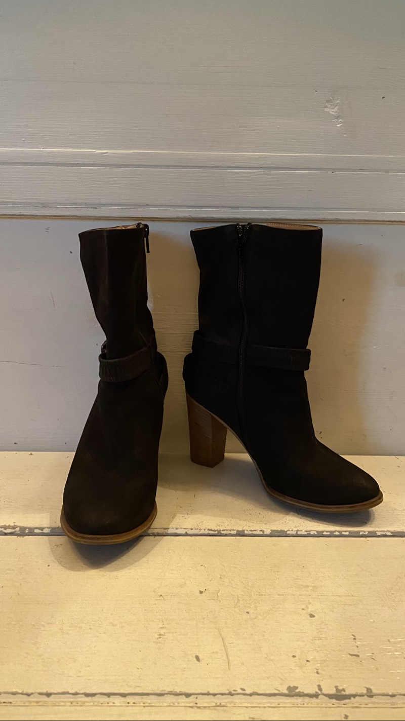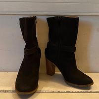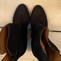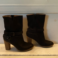 Musta puolikorkea mokka nilkkurit, solki- ja vetoketjut.