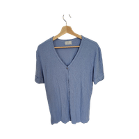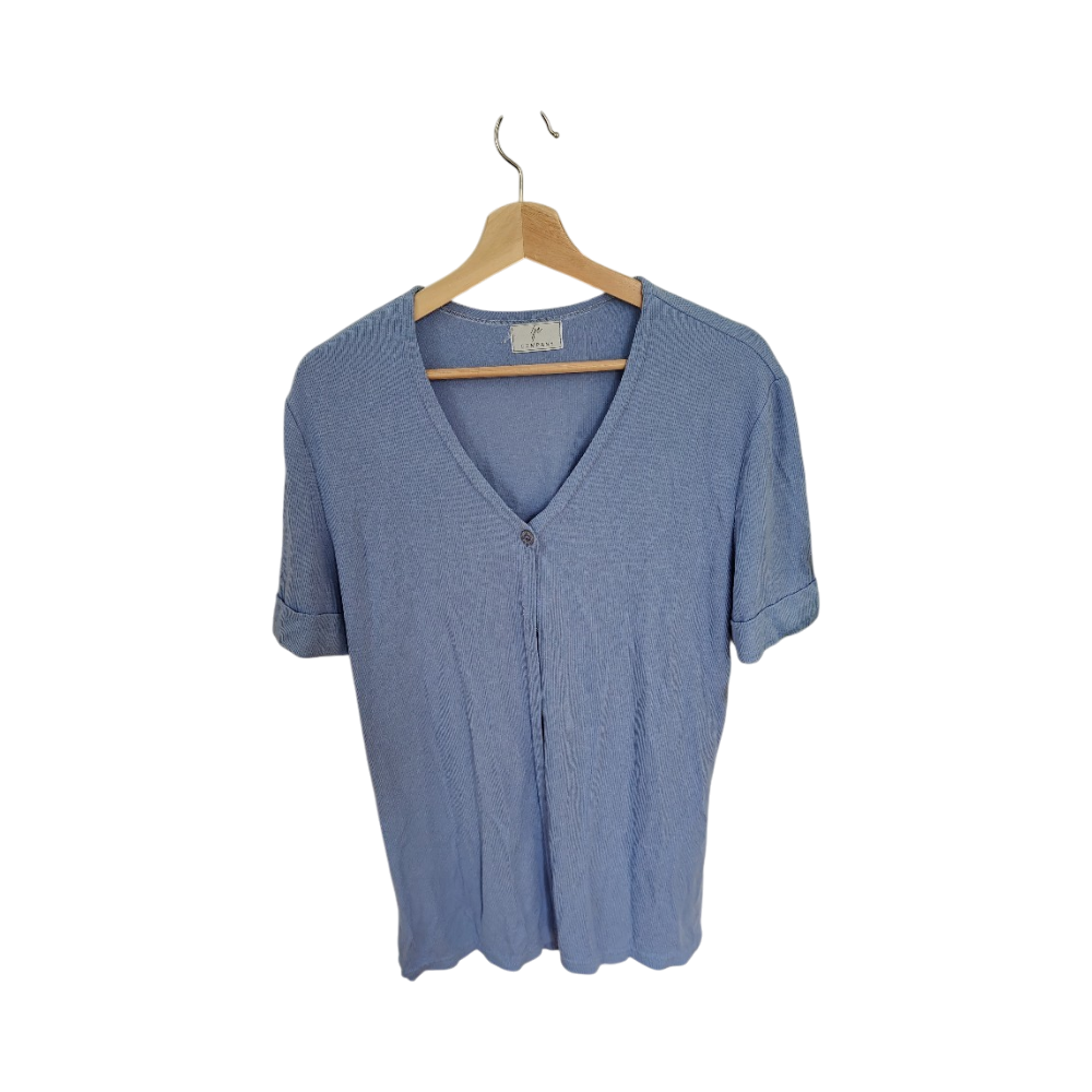 Kevyt, ribbattu lyhythihainen pusero, napitettu edestä. Valmistettu Suomessa.