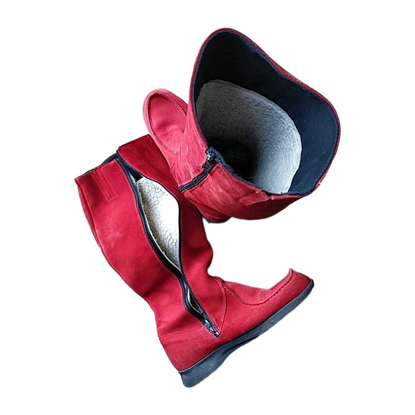 Lämpimät talvisaappaat, sisällä karvavuori, lapikasmalli. Mokassa hiukan tummentumaa jossain kohdin. Voi lähteä mokkaharjalla. Ei ole häirinnyt. Näitä ei enää valmisteta. Tehty Suomessa. Pitkä malli, pohje suhteellisen kapea. Ilmainen toimitus koodilla MN2831