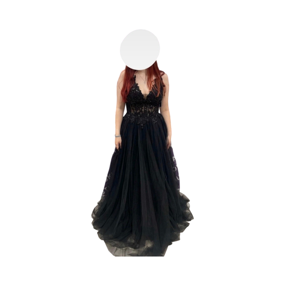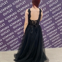 Olen itse n. 166cm ja tanssin tennareissa. Mekon helma jäi hieman pitkäksi joten sopii varmasti pidemmällekin tanssijalle.