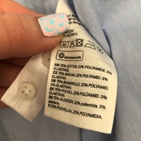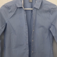 Käyttämätön vaaleansininen kauluspaita. Napitus ei ulotu ylös asti. Mukana kaksi varanappia. Käyttöönottopesu tehty.