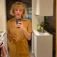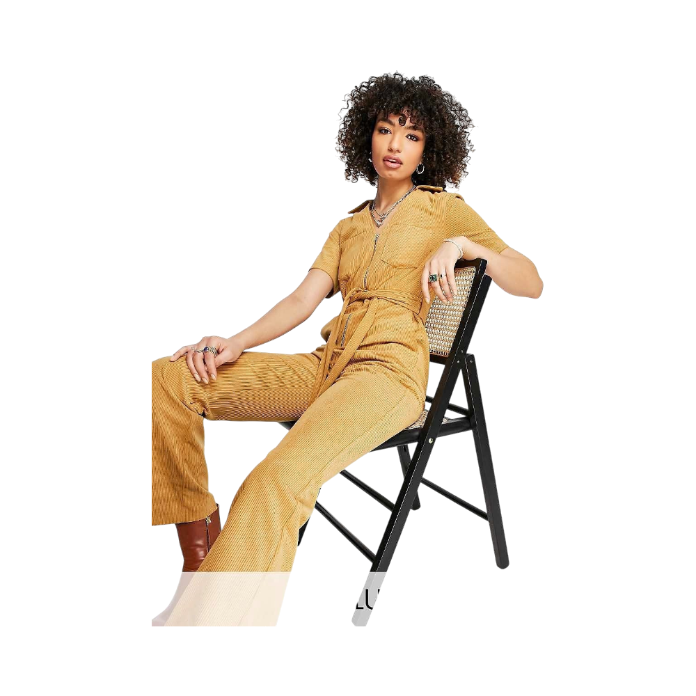 Tan cord short sleeve jumpsuit