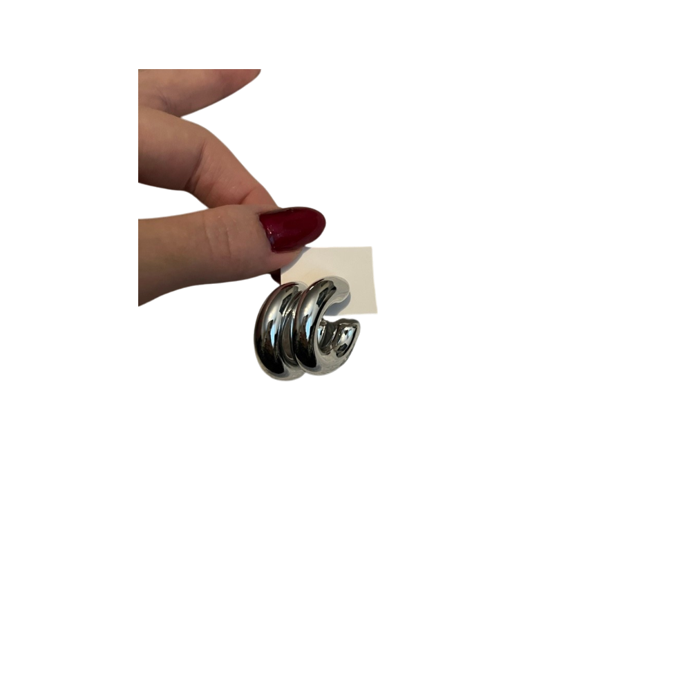 Paksut hopeanväriset korvarenkaat, kiiltävä pinta.