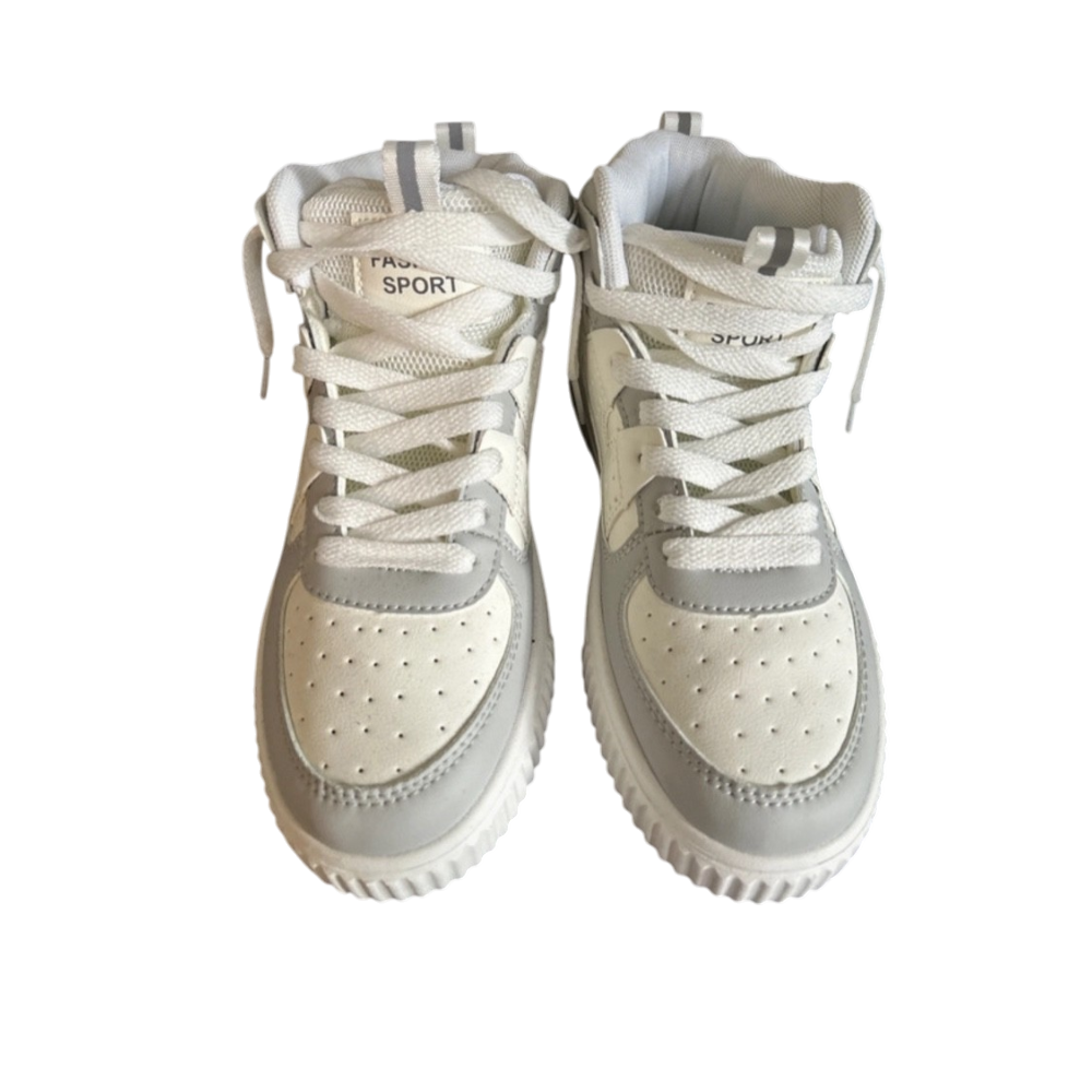 Chunky high-top trainers in white and grey, lace-up casual sneakers. New no tags was on.