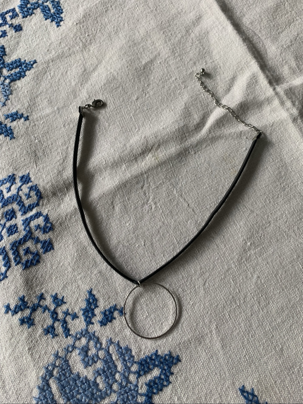 Choker/ kaulakoru/ Black choker necklace with silver ring