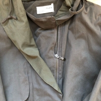 Tässä ihana takki syksyyn! Väri sammaleen vihreä, leopardi kuvioinen vuori ja hihansuissa napit, jolla hihaa saa ylemmäksi. Ulottuu juuri polven yläpuolelle, siistissä kunnossa.
