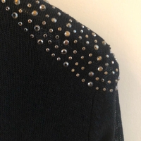 Todella kiva pellavainen neuletakki, jossa strasseja olkapäillä. Muutama strassi tippunut, muuten hyvässä kunnossa.