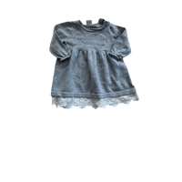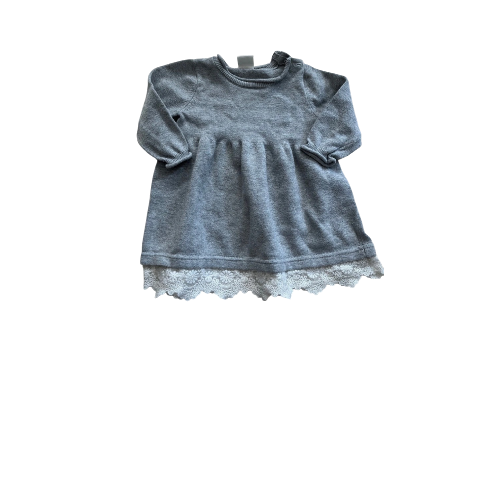 Vauvamekko, pehmeä neulos ja valkoinen pitsihelmustus. Juhlamekko, ristiäismekko