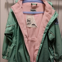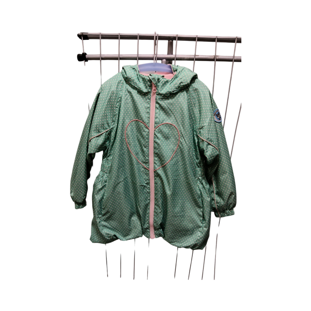 Raikkaan värinen fleecevuorinen Racoon-takki kokoa 110 (reilu mitoitus). Hyvä käytetty kunto.