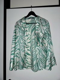 Vihreä kuviollinen pyjama-tyylinen paita ja housut, koko XS.