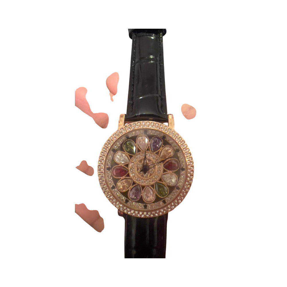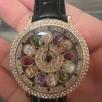 Naisten muotikello strassikoristein ja monivärisin kiviin.