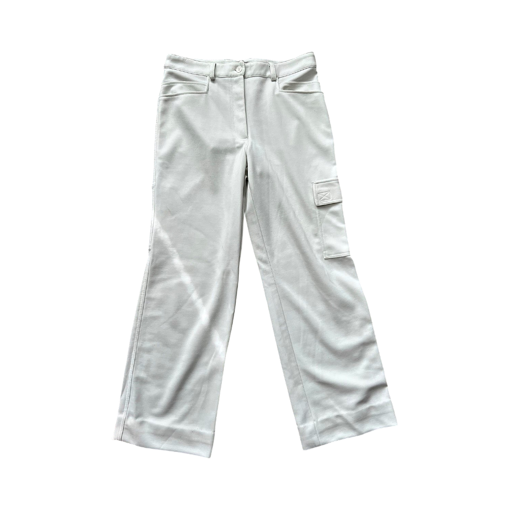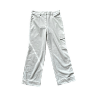 Valkoiset Vintage reisitaskuhousut, siistissä kunnossa. Koko m, lahkeen sisämitta 74cm ja vyötärönympärys 78cm. Leveät lahkeet