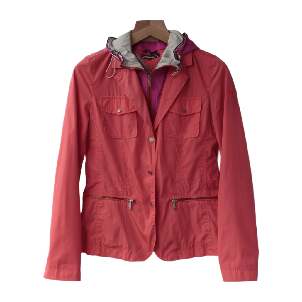 Malliltaan rento, takin sisältä löytyy vyötärökiristys. Väriltään kirkkaan oranssi, huppu-osa fuksianpunainen (saa halutessaan irroitettua, kiinnitys vetoketjulla). Ilman huppua takin saa kiinni kulta-hopeilla painonapeilla. Takin vuori puuvillaa, väriltään vaaleanharmaa. Kaksi napillista rintataskua sekä vetoketjullista etutaskua.