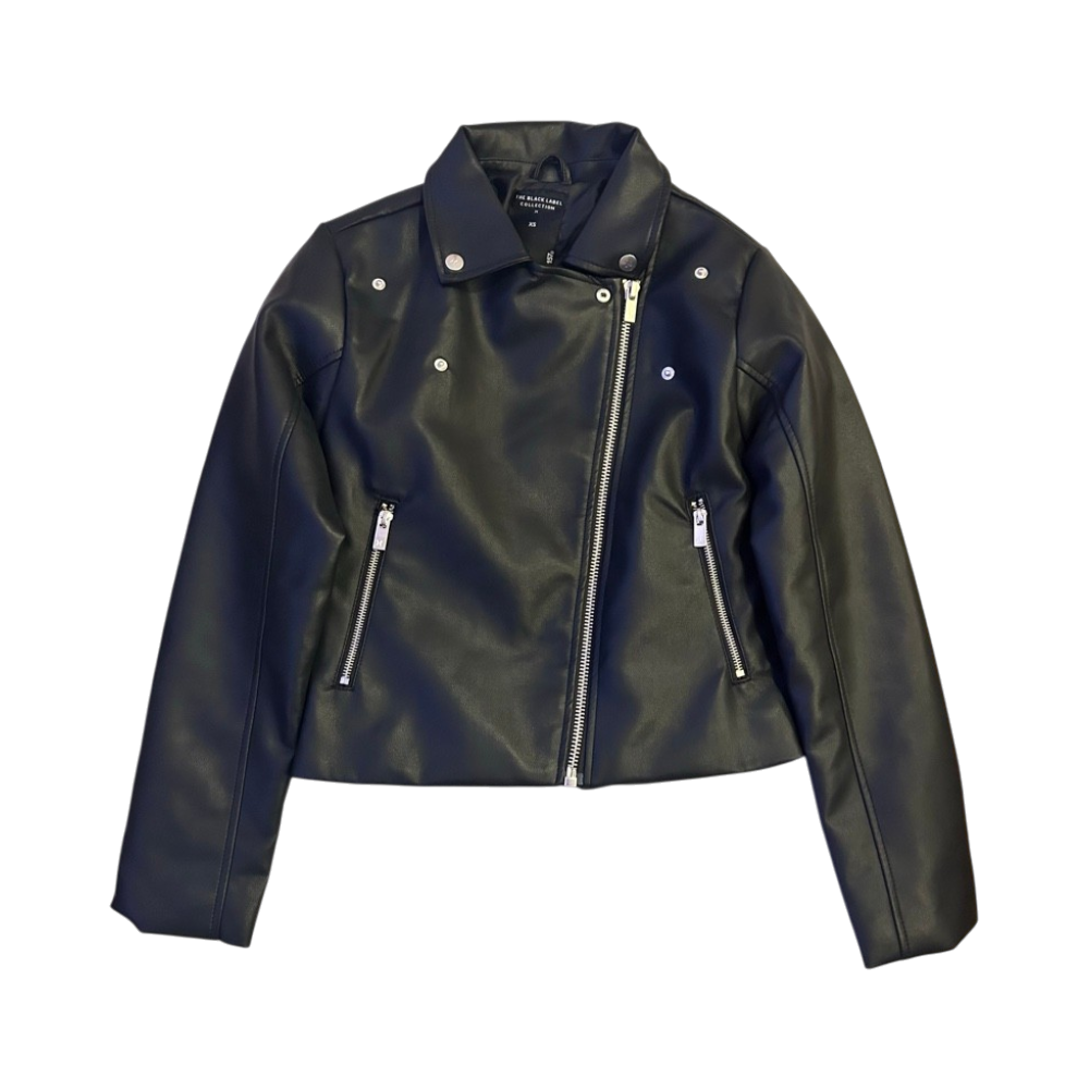 Mustaa pehmeää tekonahkaa, vinokiinnitys ja vetoketjut.