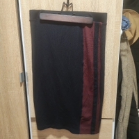 Musta suoramallinen kynähame, punainen sivuraita. Trikookangasta.