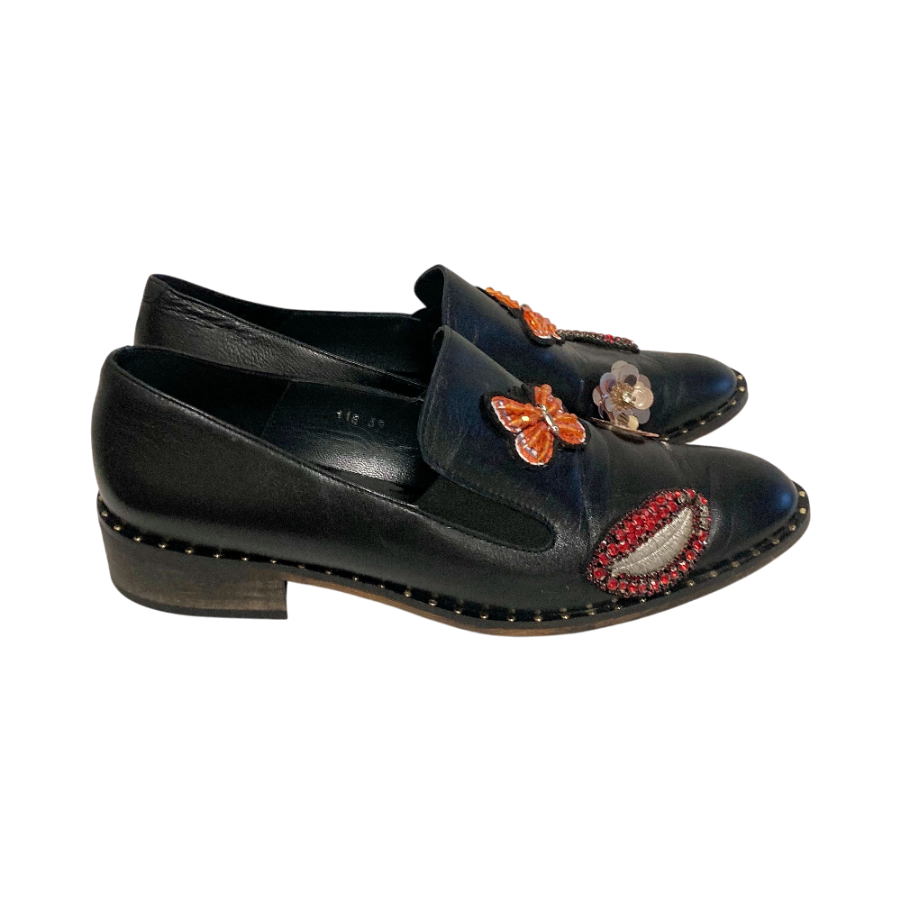 Laura Amat black leather loafers with decorative appliqués, size 39