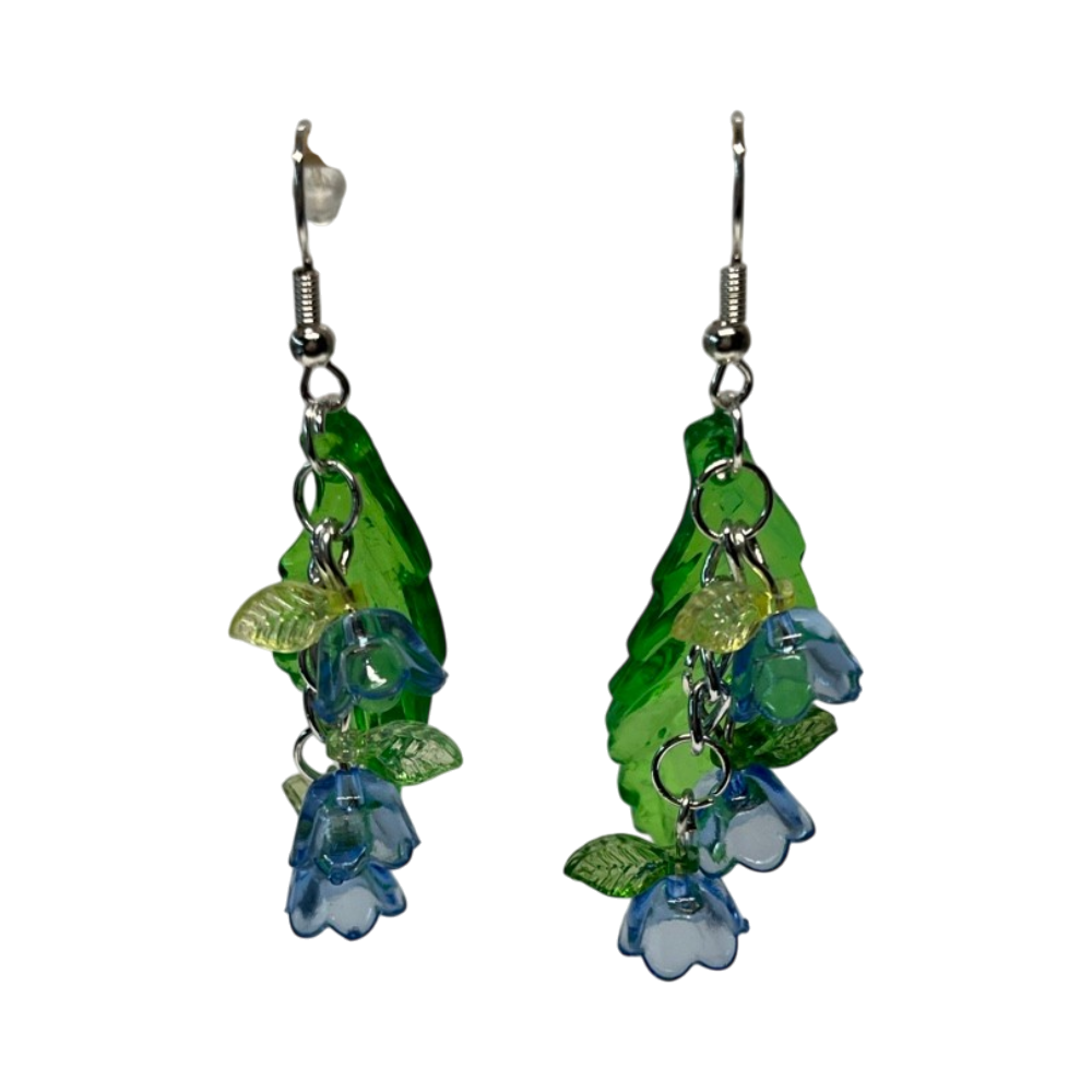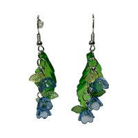 Kevyet riipuskorvakorut akryyli lehdillä ja kukilla.