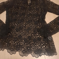 Pitkähihaista kukkavirkkausta, läpikuultava juhlava paita.Paidassa on erittäin ylellinen kukkakuvioinen pitsikuvio.