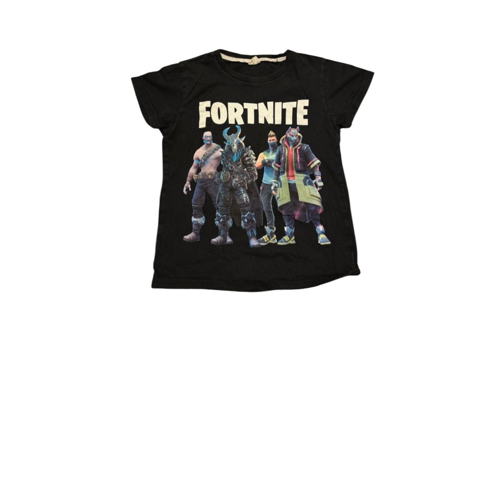Musta Fortnite-printtipaita, lasten koko, lyhythihainen.