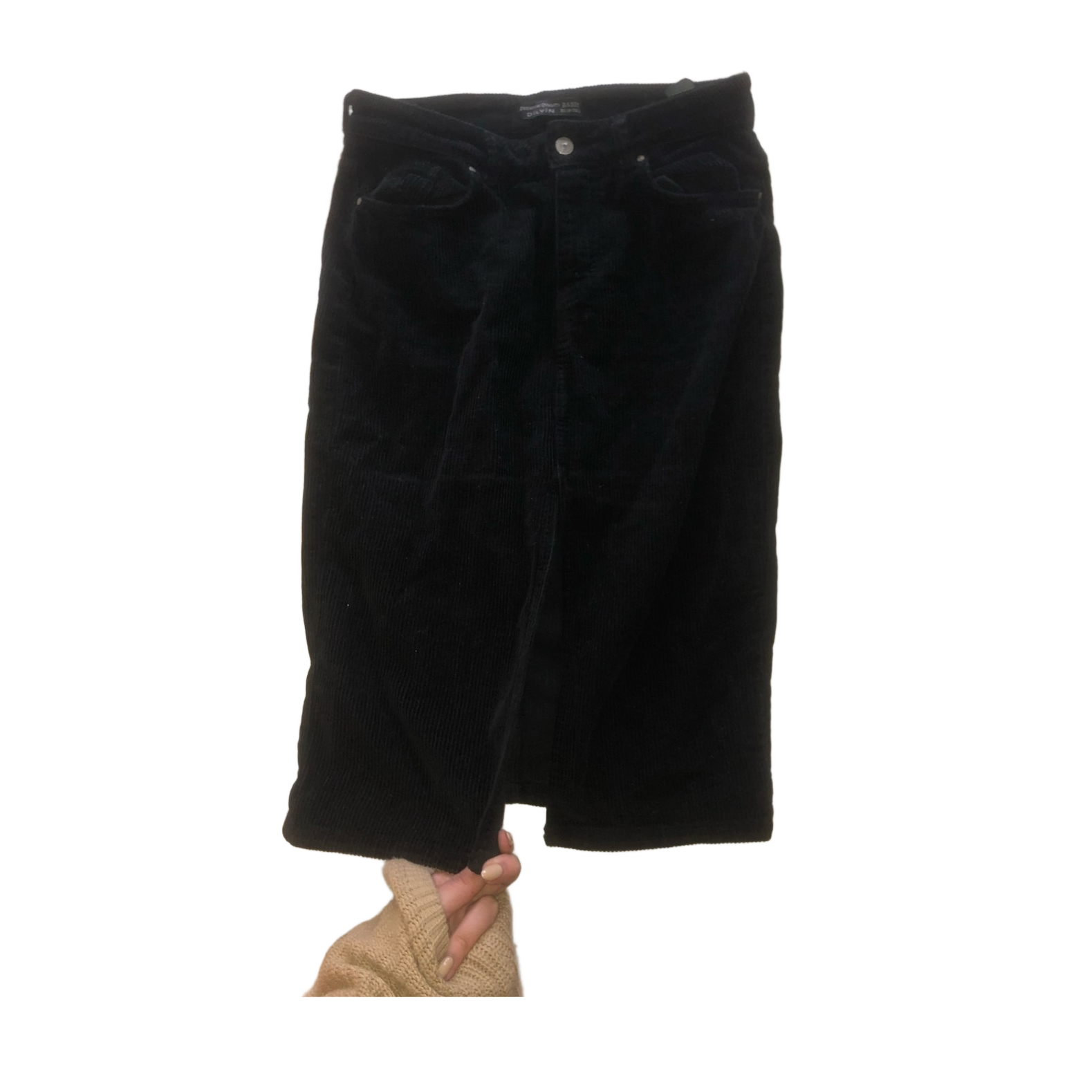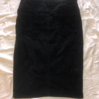 Pehmeä samettinen kynämallinen midihame, jossa edessä halkio.