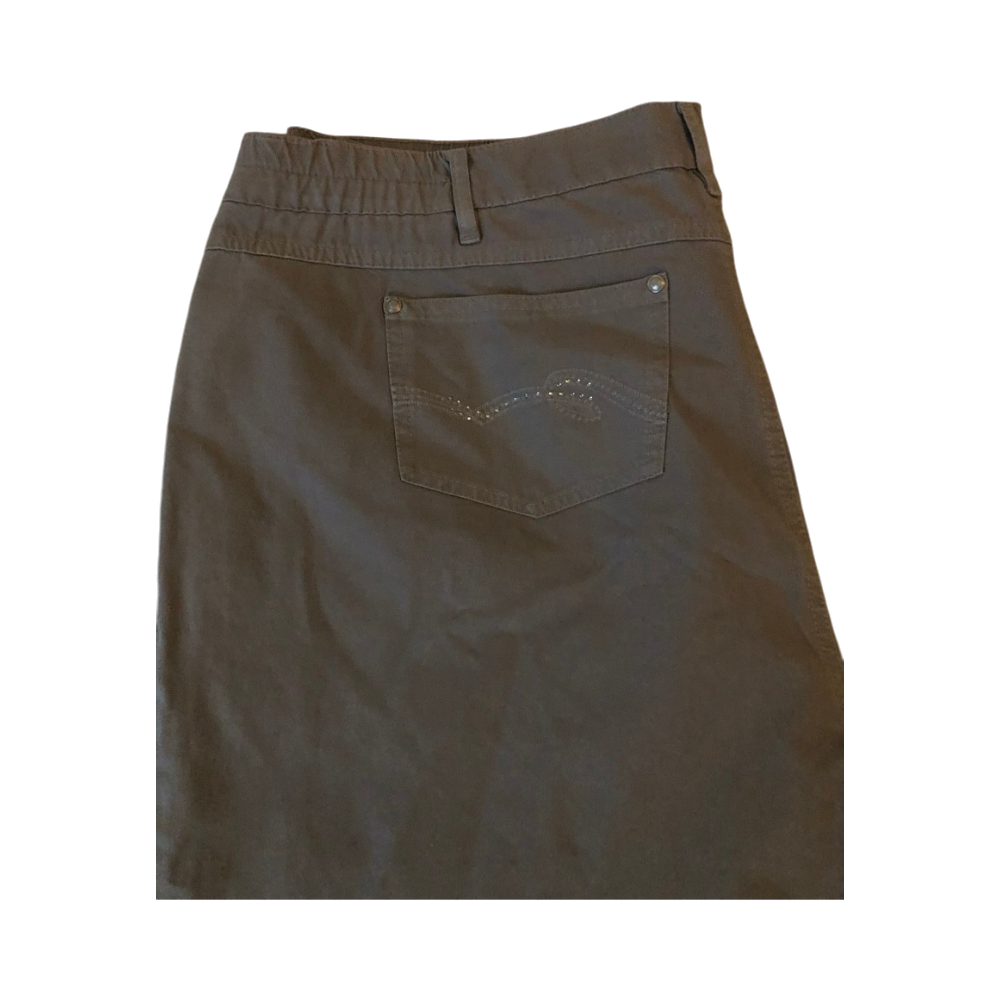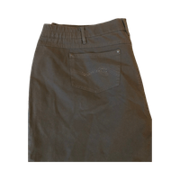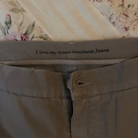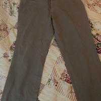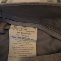 Naisten suoralahkeiset, beigenharmaat farkkukankaiset housut.